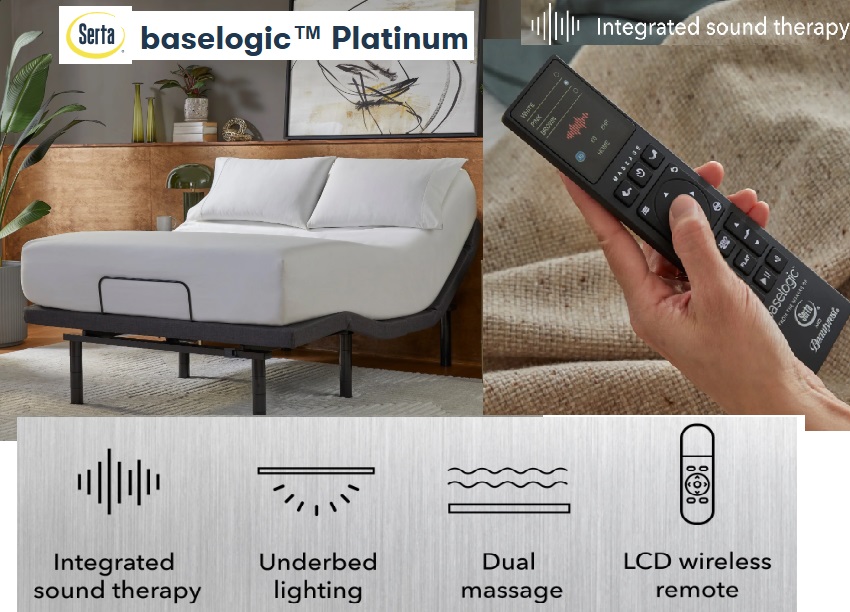 Serta Baselogic Platinum Head and Foot Massage, Sound Therapy, Zero-G/Presets Unitw/Zero Clearance Design, USB Ports, and Underbed Light